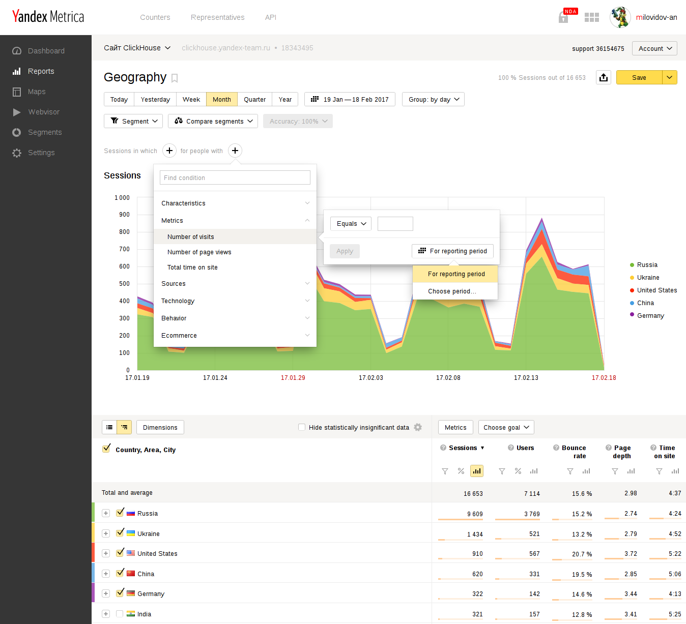 In contrast to GA*, in Yandex.Metrika, you could get data reports for large web sites without sampling.