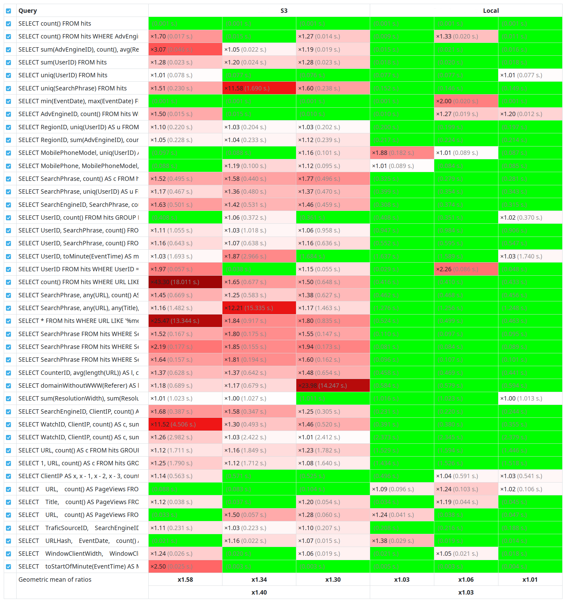 — 0 rows in set. Elapsed: 4.131 sec. Processed 100.00 million rows, 1.70 GB (24.21 million rows/s., 411.50 MB/s.)